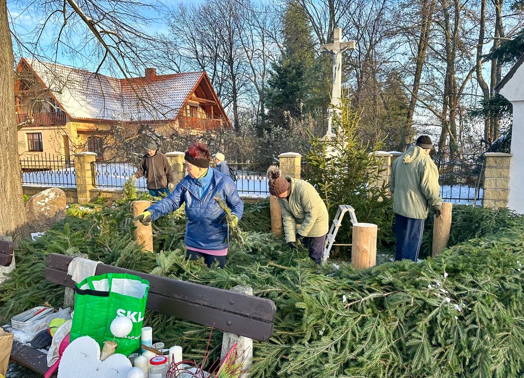 Novosedlické Žabky a Šmajdalové instalovali 30.11.2023 adventní věnec před kapličkou v Nových Sedlicích.